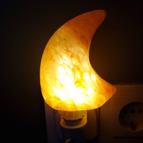 Nachtlampje van steenzout. Door de warme gloed en het zoutsteen draagt het bij aan een gezonde atmosfeer in de baby/slaapkamer